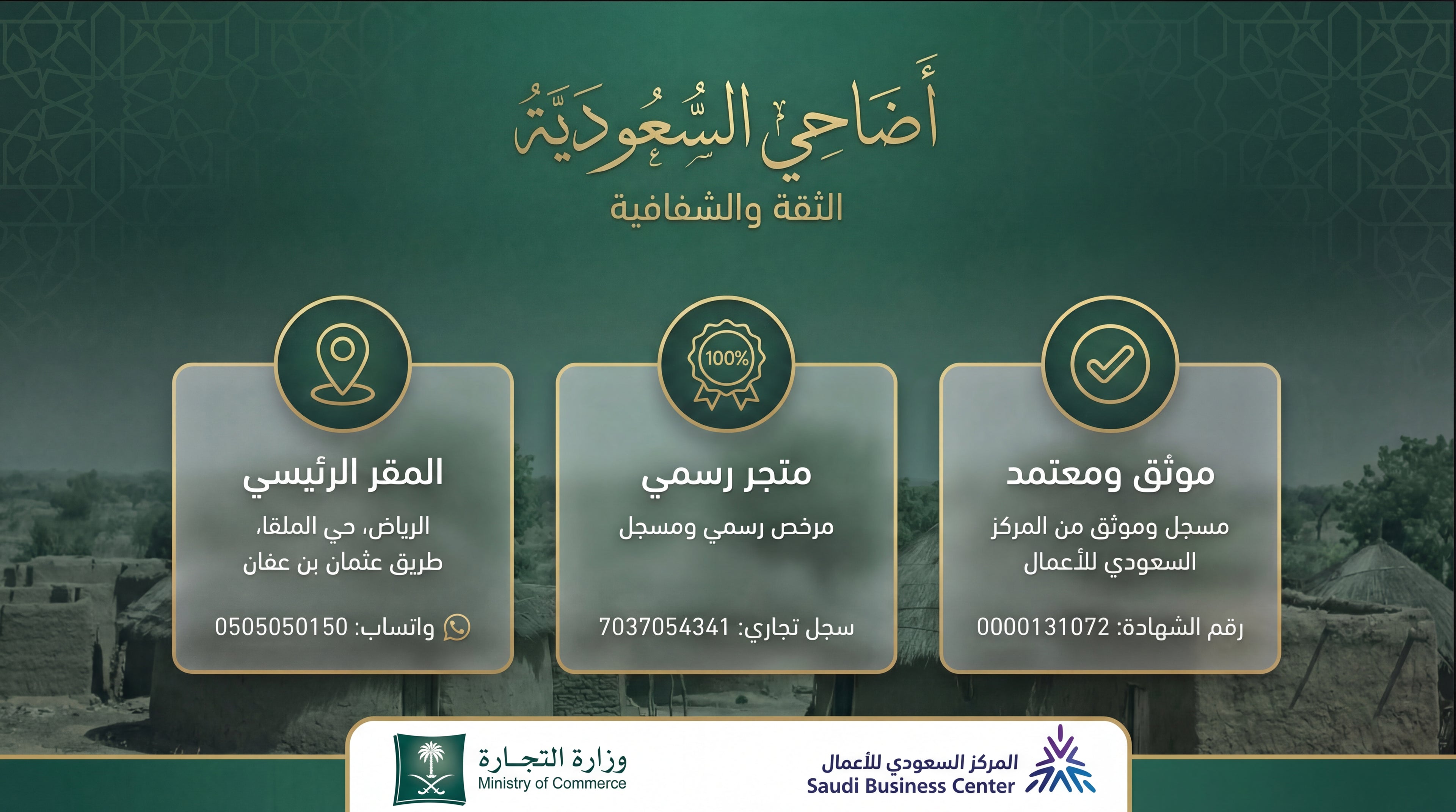 نختارها بالسن الشرعي، سليمة من العيوب، وتذبح على الطريقة الإسلامية الصحيحة.